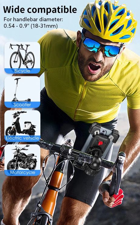 - این هولدر با طراحی فوق العاده ای که دارد همه جانبه از تلفن همراه شما محافظت میکند، از سری ویژگی های خوب در طراحی این هولدر میتوان به متریال ساخت آن اشاره کرد که از آلیاژ با کیفیت است همچنین پدهای نسوزی که در چهار گوشه این نگهدارنده قرار دارد گرفته و از هرگونه لغزش و آسیب به موبایل شما جلوگیری میکند.این هولدر به گونه ای ساخته شده که به شما این امکان را میدهد آن را روی یک دستگیره از موتور یا دوچرخه نصب کنید و بدون نگرانی از افتادن تلفن همراه یا خطر تصادف از تلفن همراه خود استفاده کنید. از دیگر ویژگی های خوب این هولدر این است که چرخش ۳۶۰ درجه دارد و شما میتوانی تلفن همراه خود را با هر زاویه ای که مناسب است تنظیم کنید. این نگهدارنده برای تلفن های ۴.۷ تا ۶.۷ اینچ مناسب است .