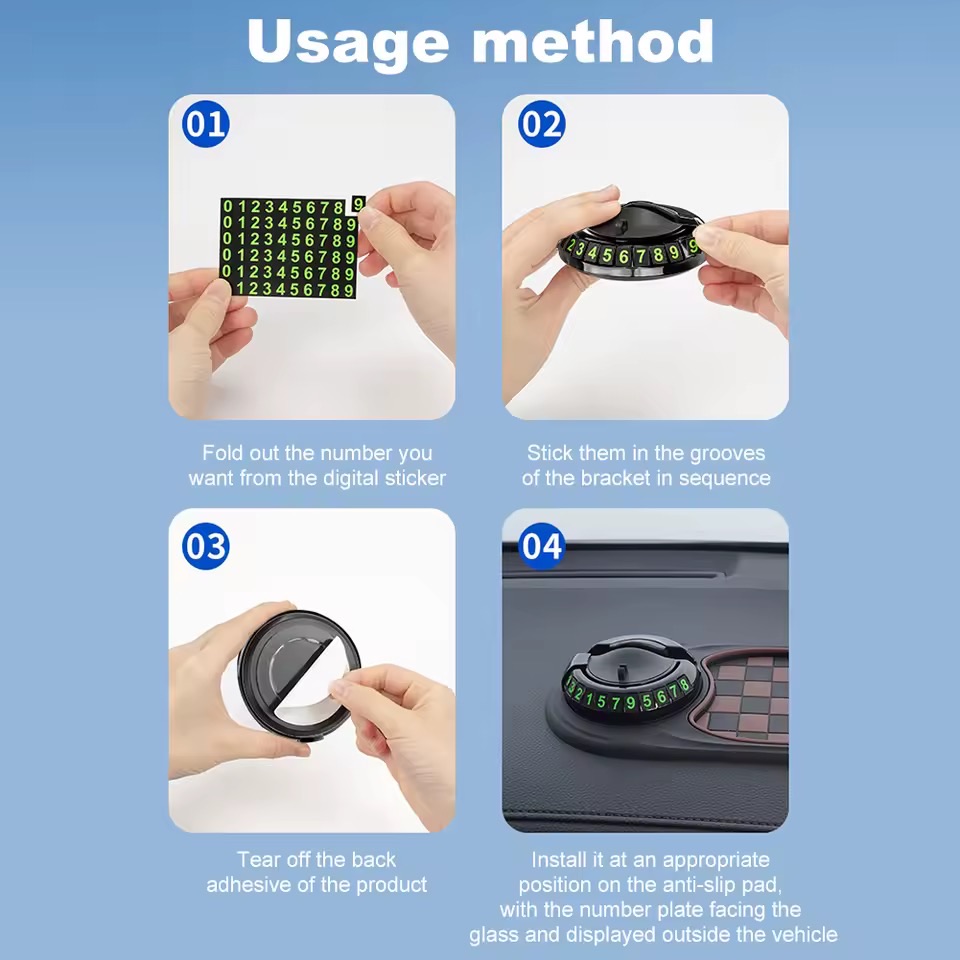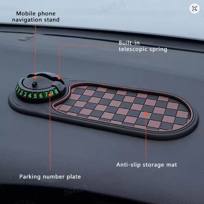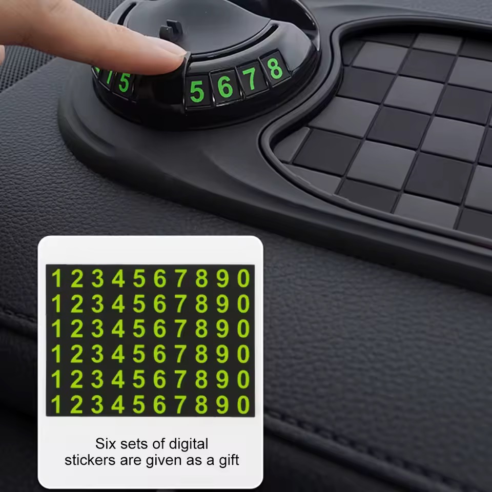 اگر گوشی‌ات را داخل ماشین زیاد استفاده می‌کنی، این پد ضد لغزش کمک می‌کند گوشی به صورت ثابت روی داشبورد بماند. قسمت دایره‌ای دارای فنر و نگهدارنده است که گوشی موبایل را روی آن می‌گذارید تا برای مسیریابی یا پخش موسیقی، جلوی چشم و بدون لرزش باشد.همچنین جهت استفاده از شماره های روی دستگاه باید شما اعداد را از روی برچسب جدا کرده و داخل نگهدارنده قرار دهید. وقتی خودرو را در جایی پارک می‌کنید، می‌توانید شماره تماس خود را طوری تنظیم کنید که از بیرون خودرو دیده شود تا در صورت نیاز با شما تماس بگیرند.